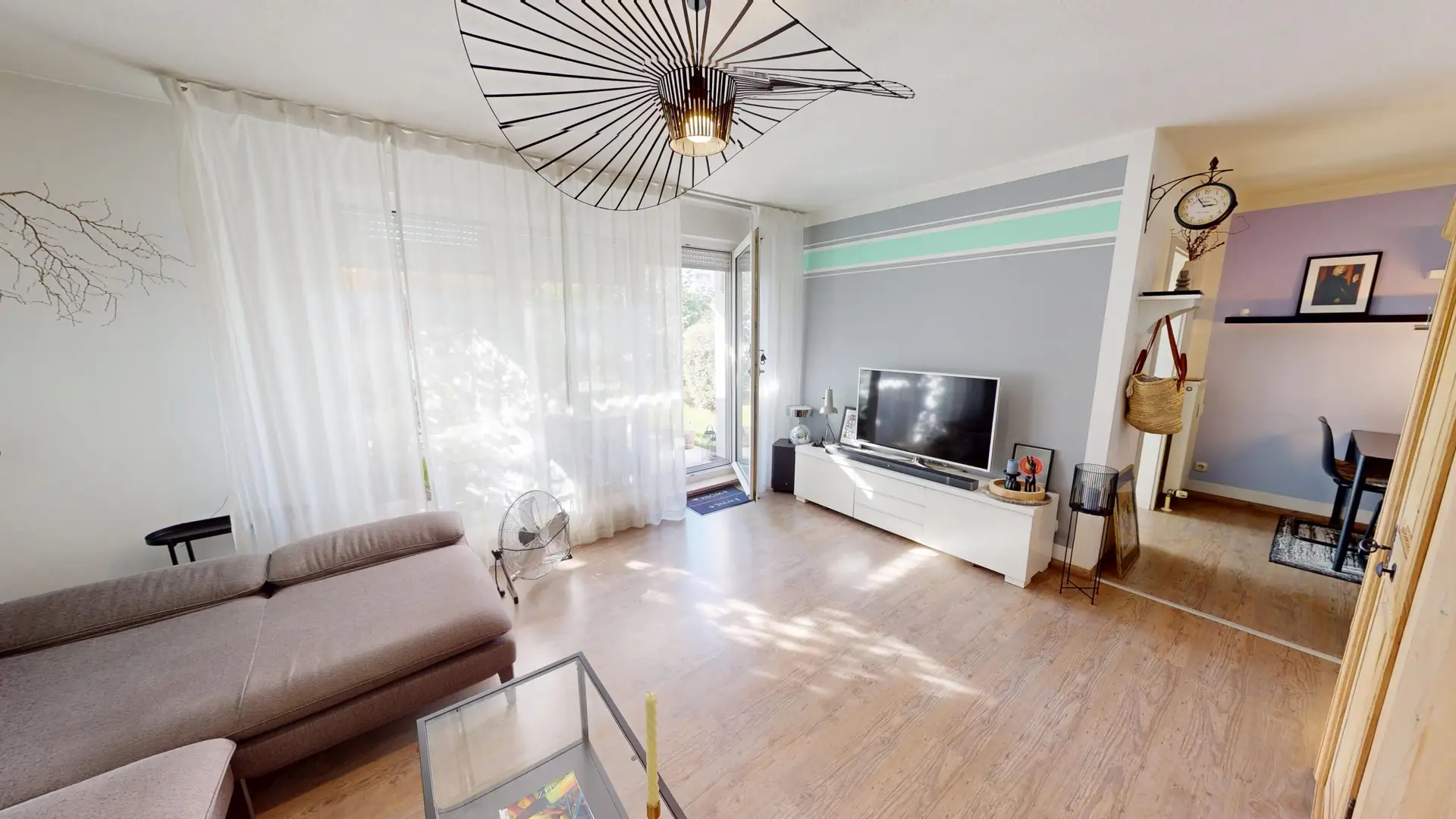 Entdecken Sie diese charmante 2-Zimmer-Wohnung zum Kauf, die Komfort und Naturverbundenheit perfekt vereint. Mit einer Wohnfläche von 61,13 m² und einer großzügigen Gartenfläche von 161 m² bietet diese Immobilie im Erdgeschoss eines gepflegten, zweistöckigen Gebäudes ein Zuhause zum Wohlfühlen.